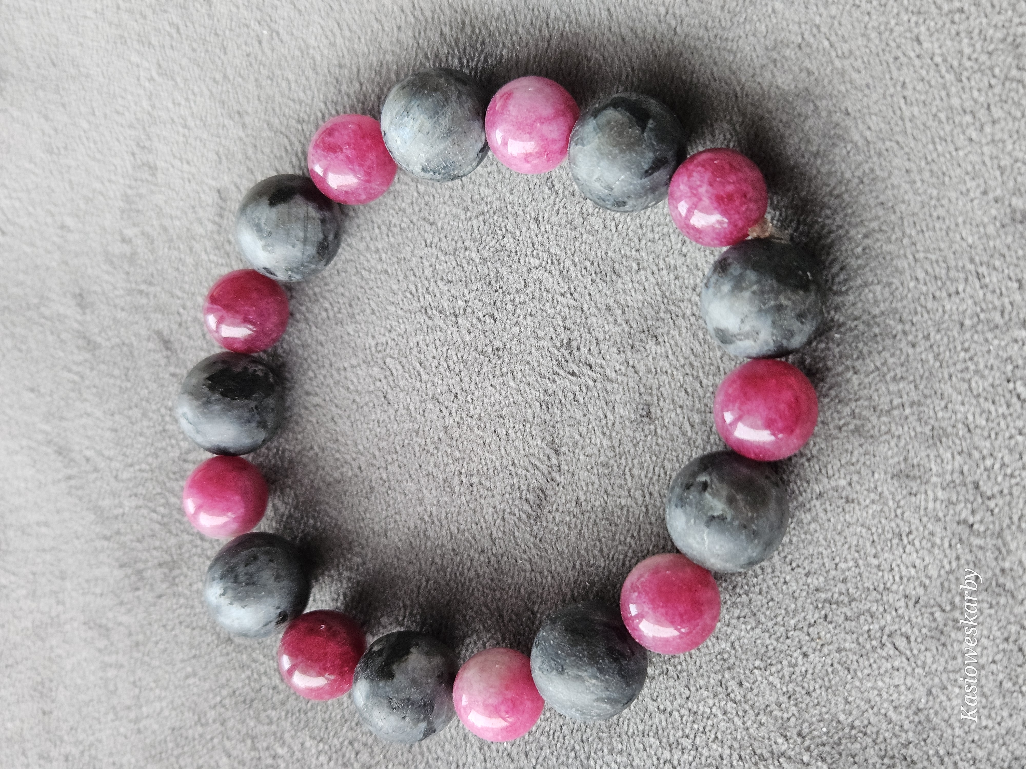 Bransoletka z kamieni naturalnych – różowo-grafitowa | na gumce jubilerskiej | handmadeBransoletka z kamieni naturalnych – różowo-grafitowa | na gumce jubilerskiej | handmadeBransoletka z kamieni naturalnych – różowo-grafitowa | na gumce jubilerskiej | handmade